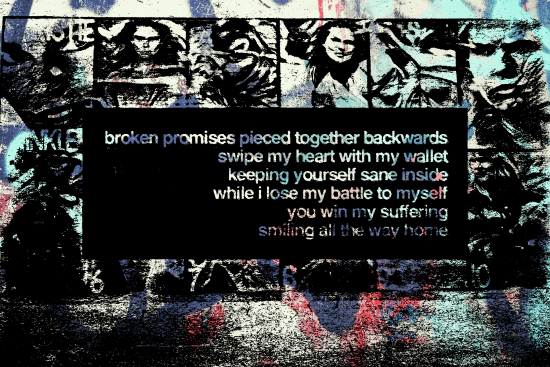 She used me to define herself Feeding me TV for dinner He drank to forget himself It was me he […]